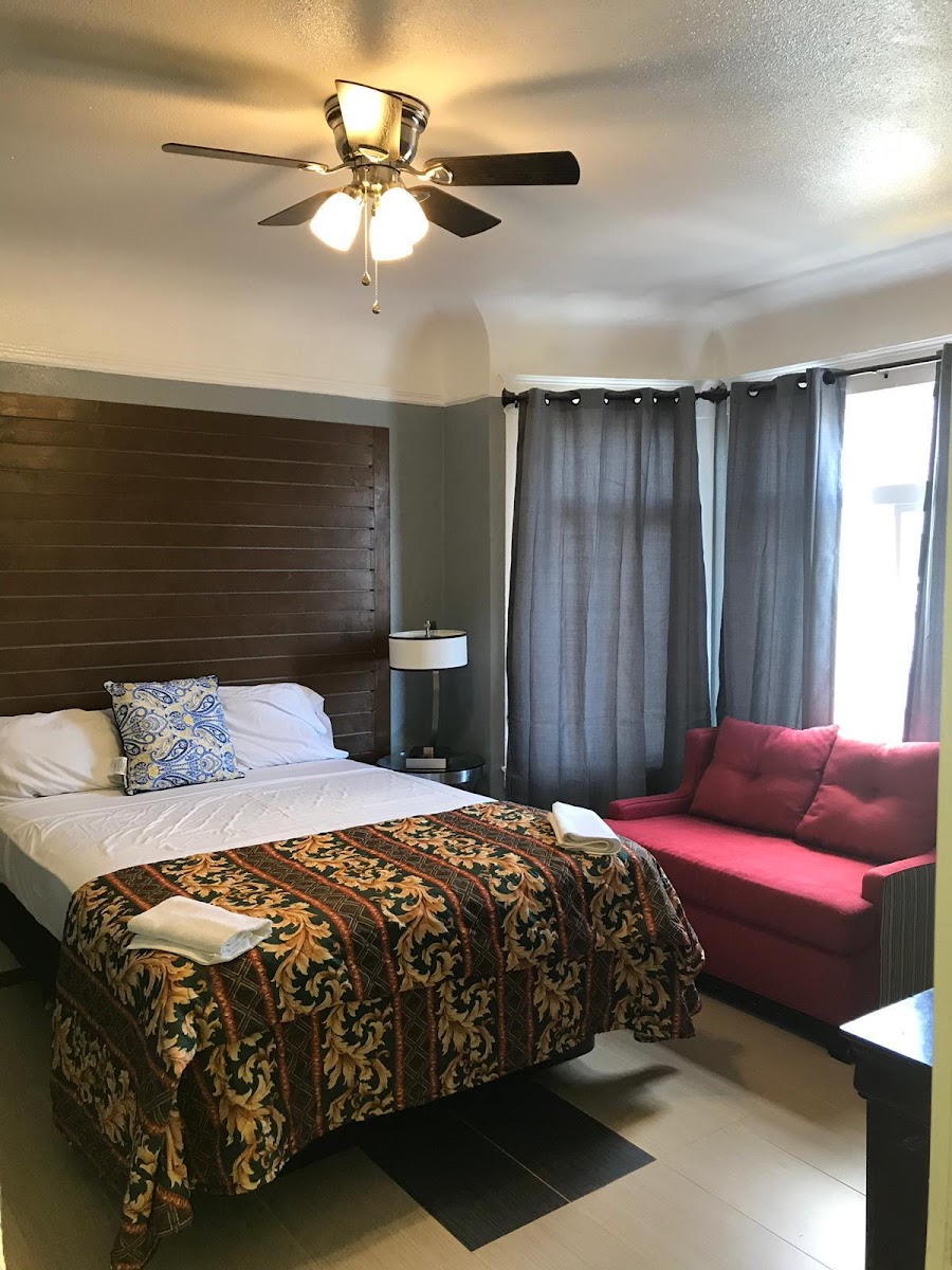 The room is clean and bed is okay, they don't have daily cleaning service but you can ask for clean linens. Common toilet and shower for every floor. Keep your own garbage in a plastic bag and bring it to the garbage room. This place is nearby 16th & Mission Streets & a block from Valencia Street for easy access on restaurants, coffee shops, supermarkets & transportation. Staff are very nice, friendly and helpful.